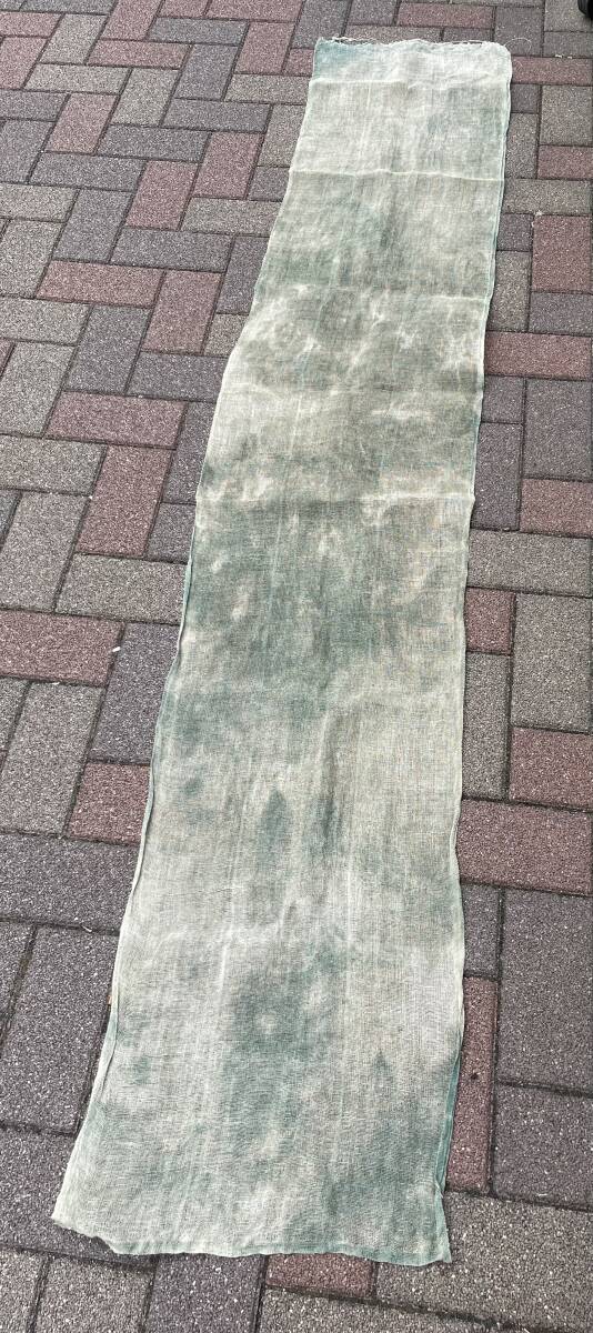 - 古い 蚊帳 カヤ ほどき ◆ハギレ・古布/綿麻 38×215cm 1幅 緑×まばら