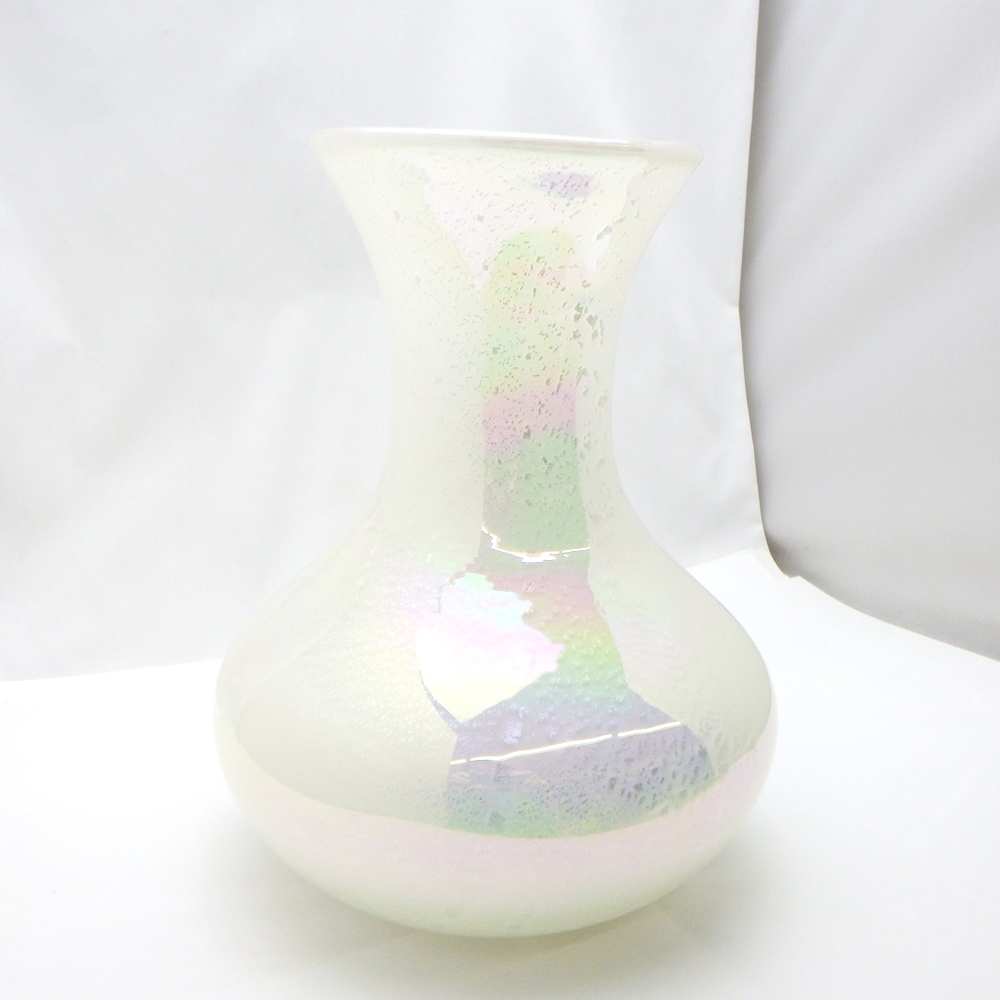 - SI-65 ガラス 花瓶 花器 花生け 壷 壺 オーロラ 虹色 アンティークショップ保管品 レトロ 検索用:上越クリスタル 銀箔