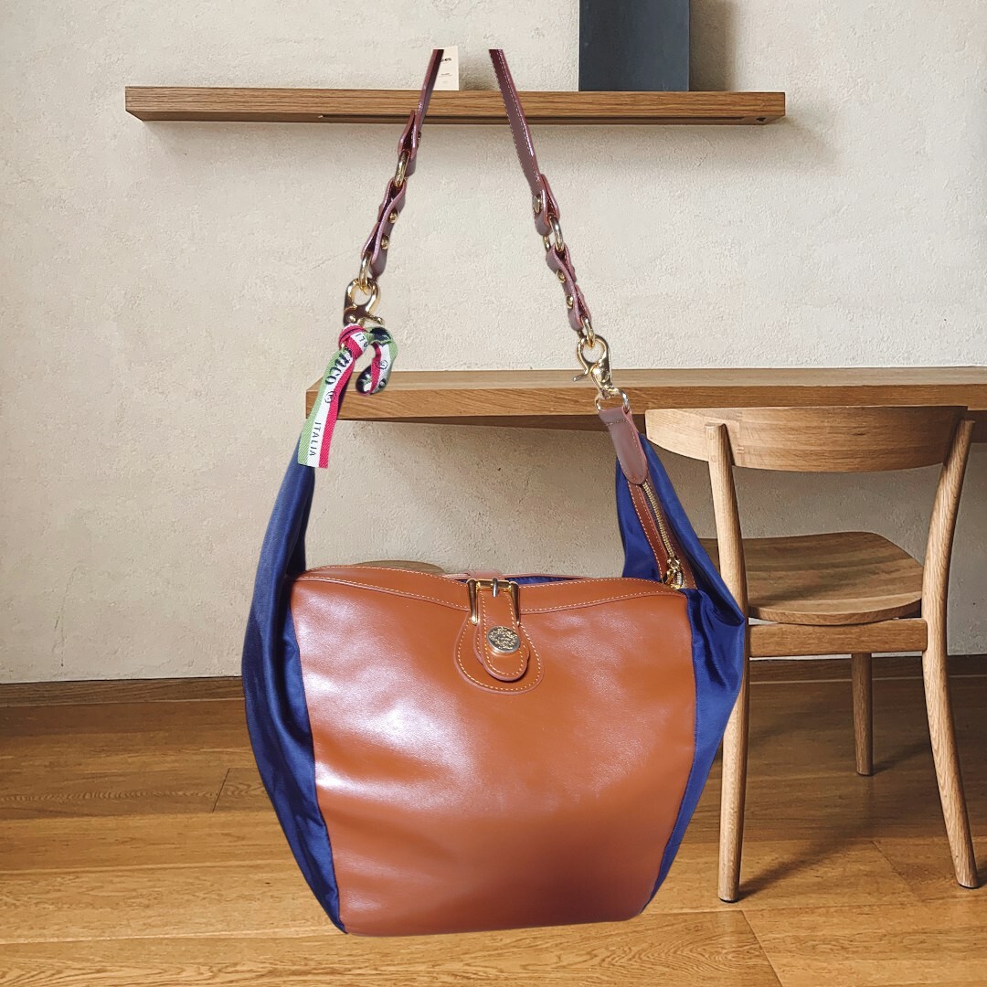 - 美品!オロビアンコ 柔らかく艷やかなレザー&ナイロン ショルダーバッグ 長短2本のショルダーストラップ 送料無料!