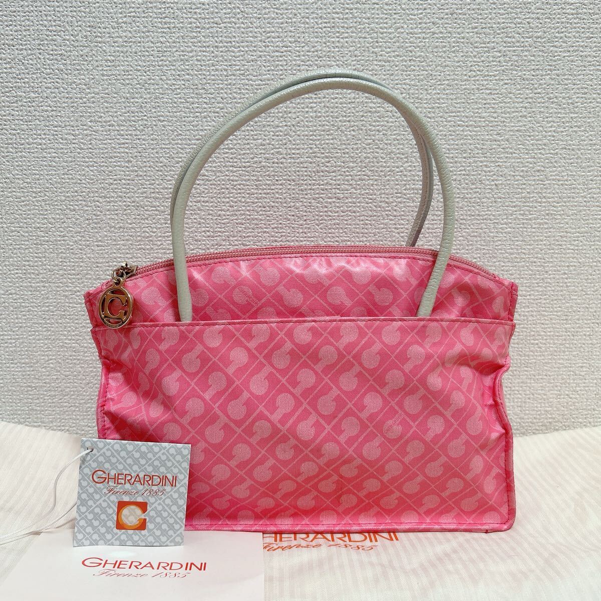 > 美品 GHERARDINI ゲラルディーニ レディース ハンドバッグ トートバッグ 超軽量 ソフティ ピンク 総柄 可愛い ガーリー 高級 海外 ブランド