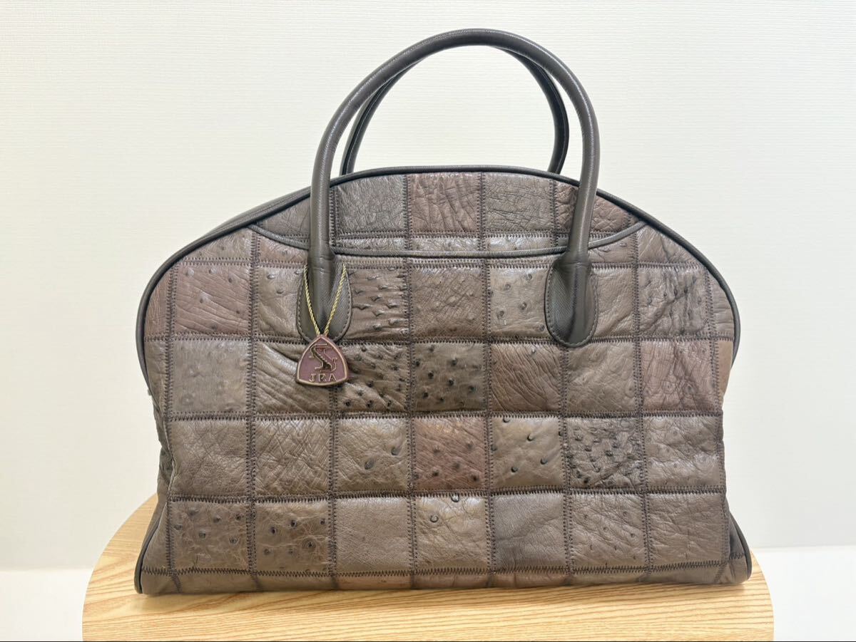 - ☆JRA オーストリッチ パッチワークデザイン ブラウン ハンドバッグ 希少品 保管品☆