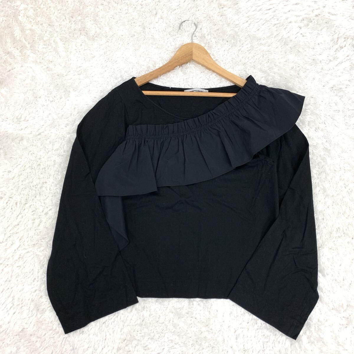 > ROSE BUD ローズバッド 長袖Tシャツ トップス カットソー 綿 コットン フリル 黒 ブラック F YA9925