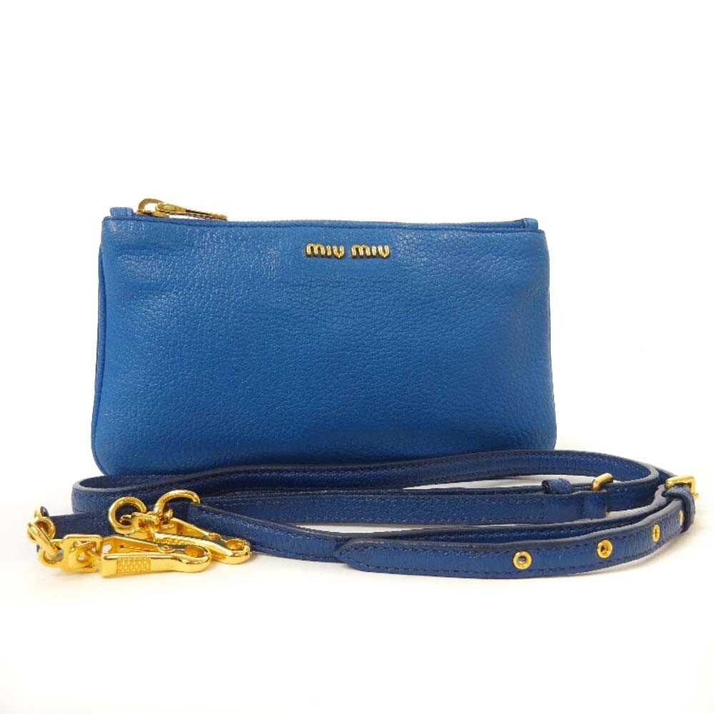 > ミュウミュウ ダブルファスナー ミニ ショルダーバッグ レディース レザー ブルー 中古 送料無料 MIUMIU
