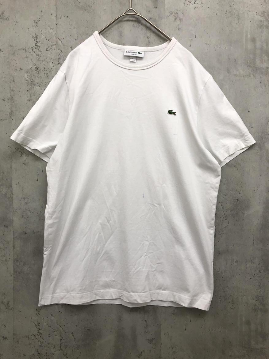 > ゆうパケットOK LACOSTE ラコステ 刺繍 無地 クルーネック スリムフィット Tシャツ sizeUS M/白 ■■ ☆ fha7 メンズ