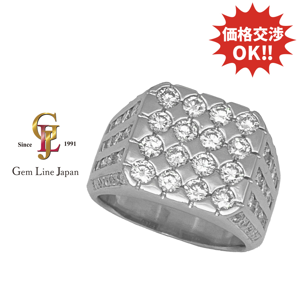 - Pt900 23.50g ダイヤモンド 2.83ct プラチナ メンズ 印台 リング