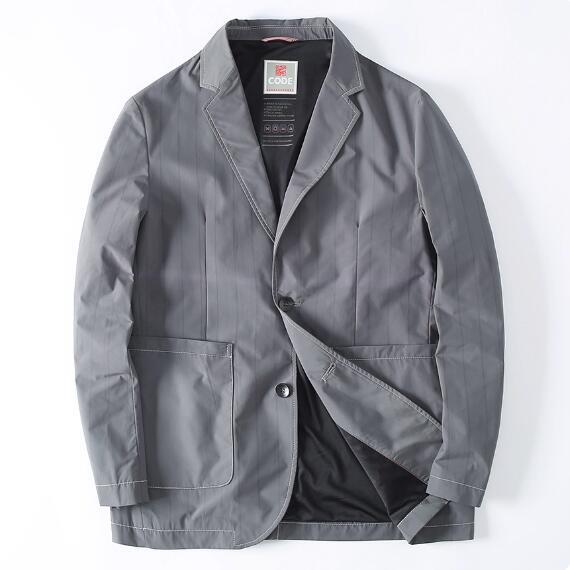 > 新入荷大人気3XL グレー 新品ブレザー ストライプストレッチ薄手テーラードジャケットメンズ 防シワ 細身 春夏 軽量 ビジネス ジャケット