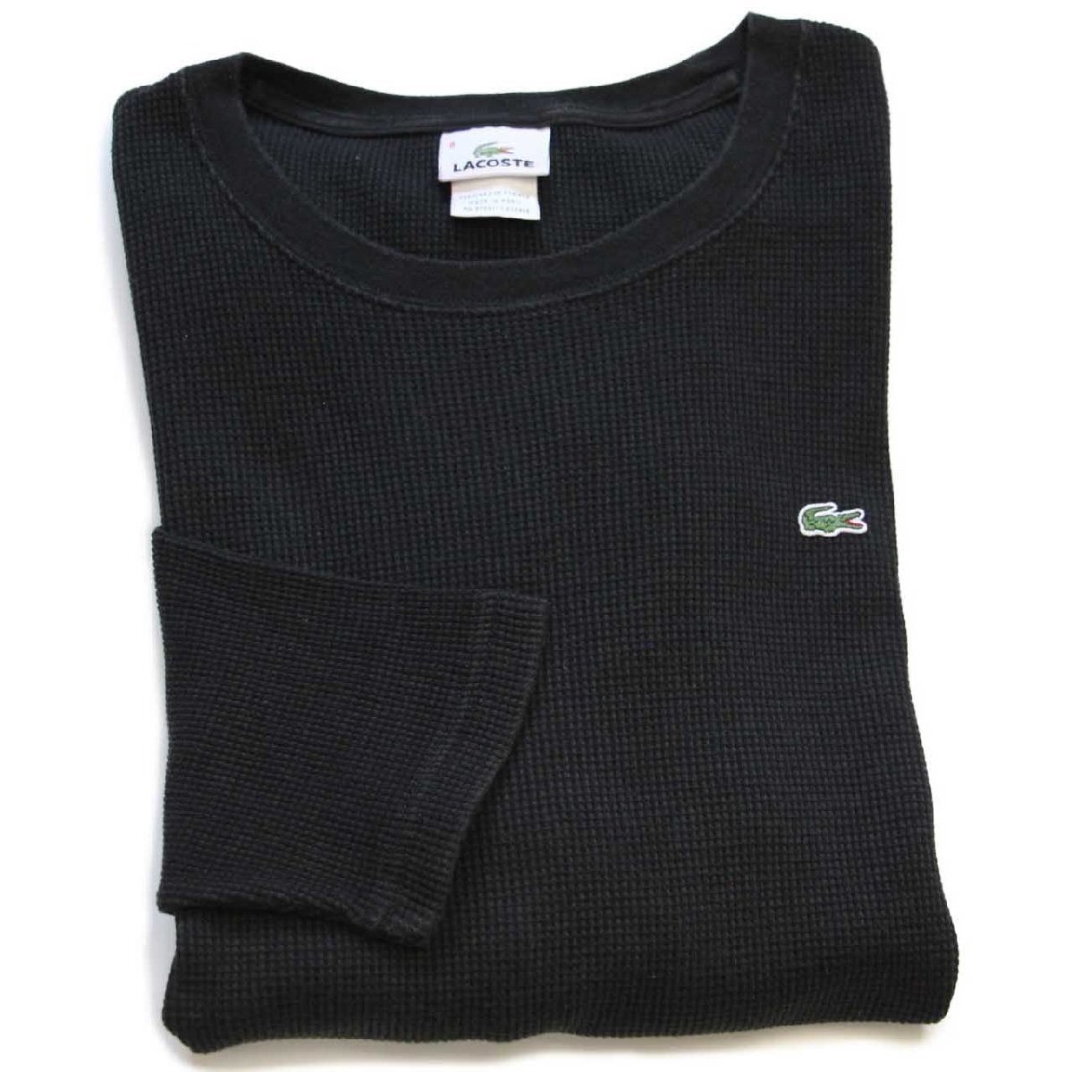 > ★00s LACOSTEラコステ ワンポイント コットン サーマルシャツ 黒 8★特大 オールド ユーロ フレンチ ワッフル ブラック ビッグサイズ