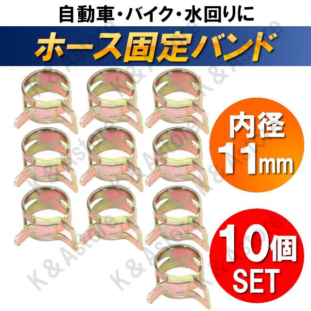 - ホース バンド クランプ 板クリップ スプリング 留め具 強力 ホース止め ゴムホース シリコンホース エアチューブ 燃料ホース 11mm 10個