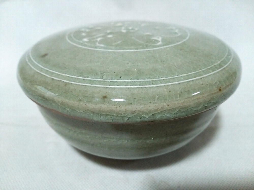 - ★【一美堂】★茶道具★丹波焼 大上昇作★丹波青磁★『蓋付菓子器』小喰籠★紙箱付★