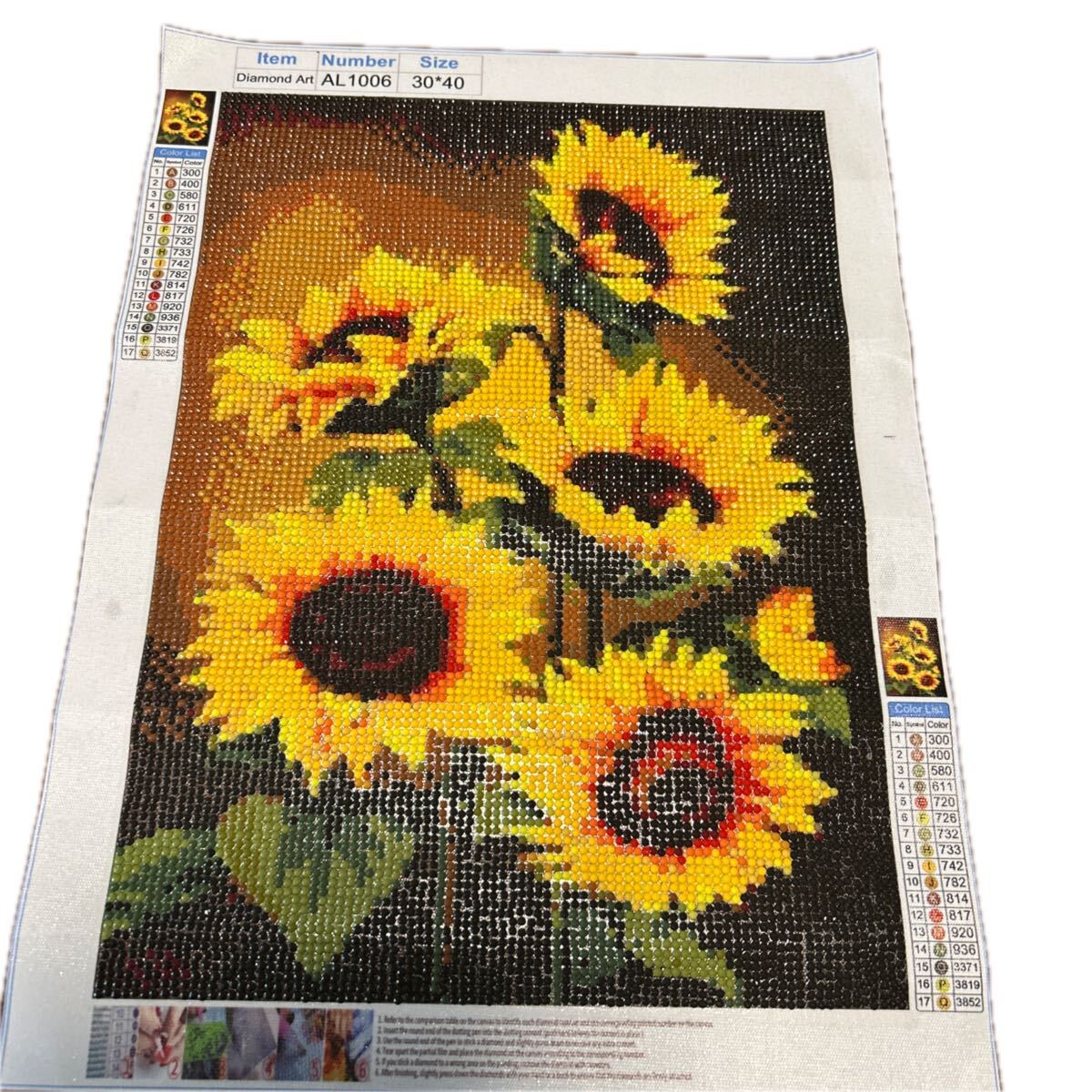 > ダイヤモンドアート完成品/インテリア/ハンドメイド/ひまわり/花 フラワー FEILER