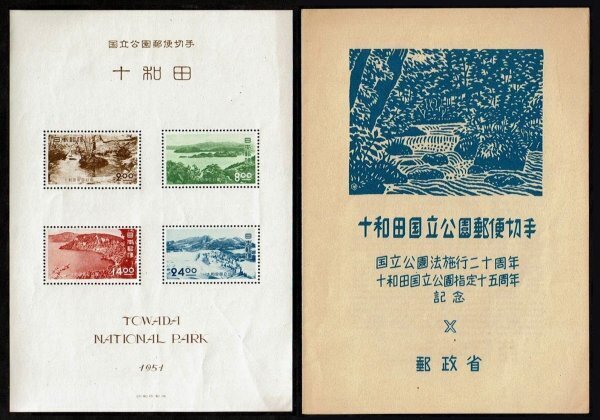 - N895■1951年 第1次国立公園切手 十和田 小型シート(タトウ付)■未使用・良好