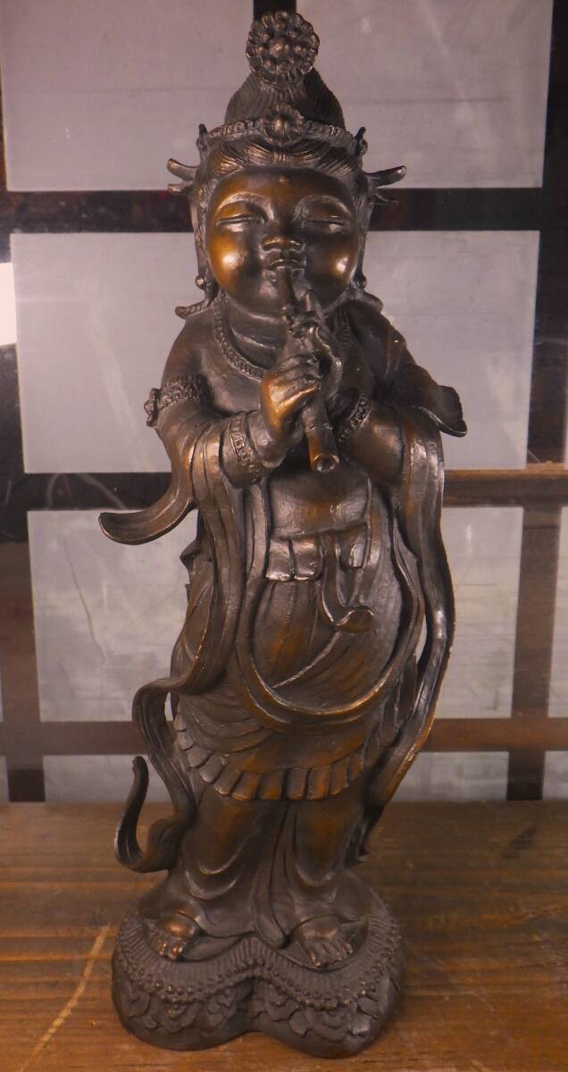 東大寺の大佛殿の正面に鎮座する国宝 金銅八角燈籠(西北面の縦笛を吹く音声菩薩像)に想いを巡らし製作されたブロンズ製 山崎博之 『天平の調べ』でございます。