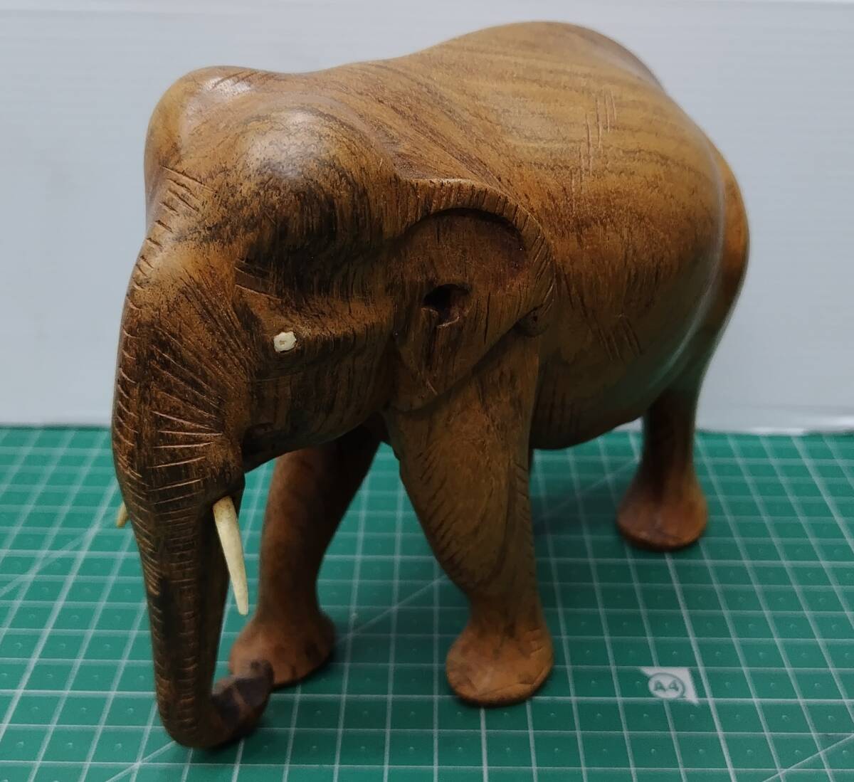 - 木彫 象 置物 アンティーク 彫刻 ●H5209