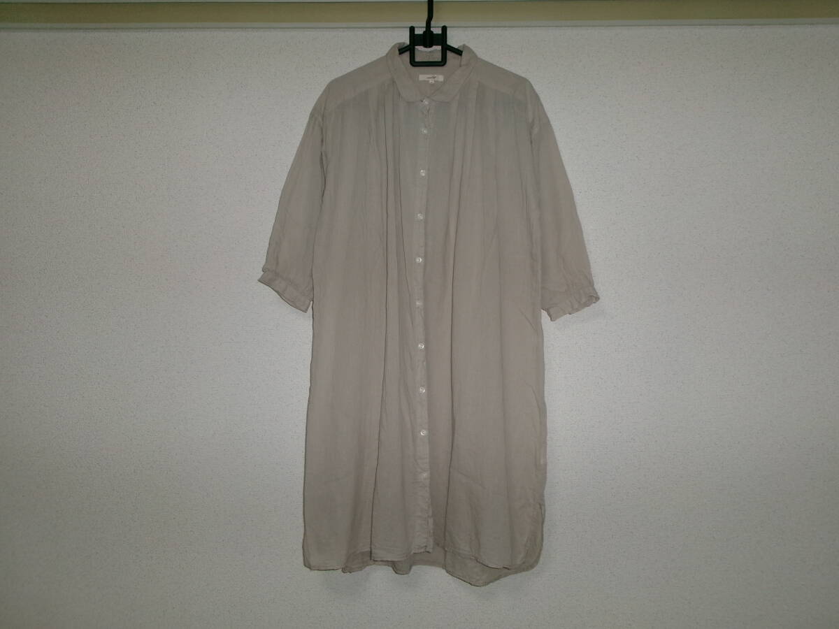 > studio CLIPスタジオクリップ☆アダストリア☆グレーの5分袖シャツチュニック☆ナチュラル&柔らか涼しい♪コットンガーゼ素材☆Mサイズ