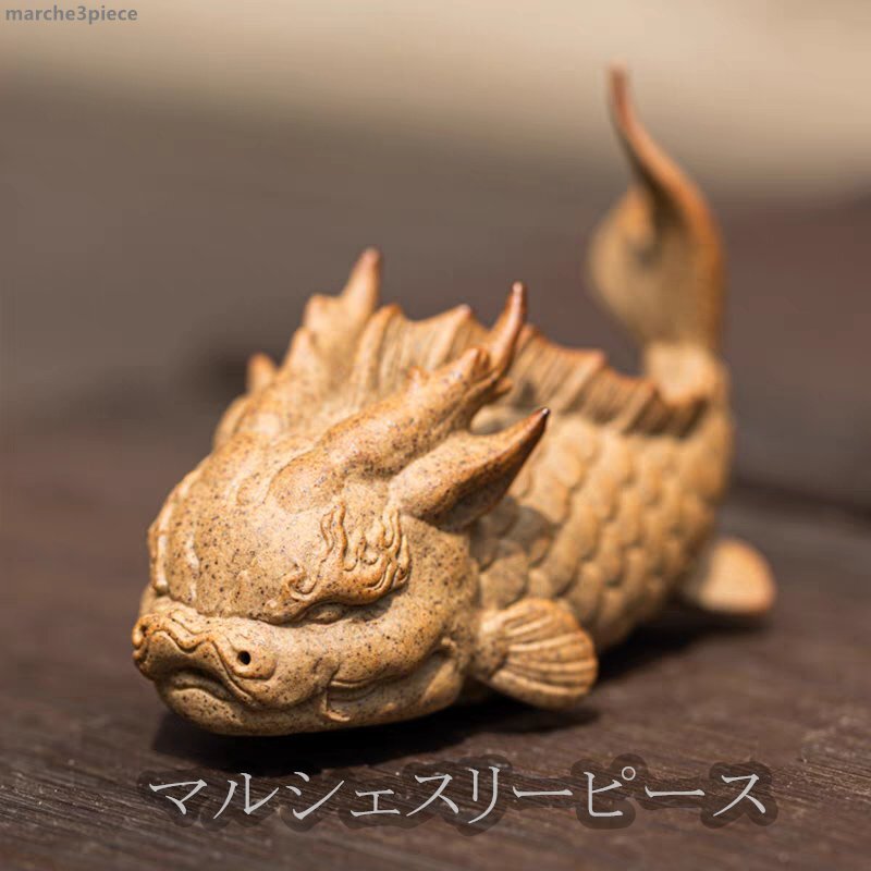 - 景徳鎮 龍魚(ロンギョ)茶陶芸置物 テーブル茶器・水槽レイアウト用 / 山海経モチーフ 文創 麒麟(きりん)招財貔貅(ひきゅう)