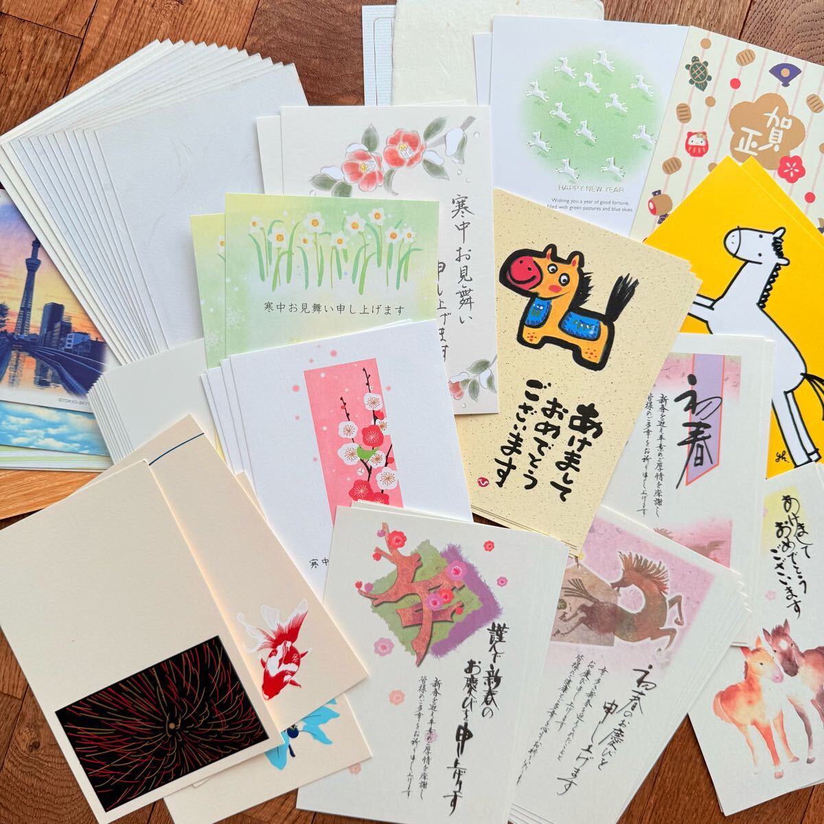 - 葉書 午年 年賀はがき 寒中見舞い はがきセット 未使用 季節の挨拶 花柄 馬 イラスト 冬 夏 絵葉書 まとめて 和風 洋風 官製はがき