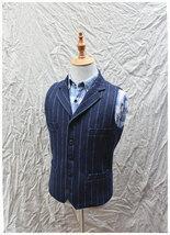 - ツイードストライプ ジレベスト ビジネスベスト カジュアル ブルーM
