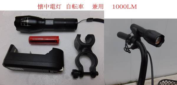 - 送料無料 匿名 LED 懐中電灯 自転車用 兼用 1000LM 充電池付 4ヶ月保証