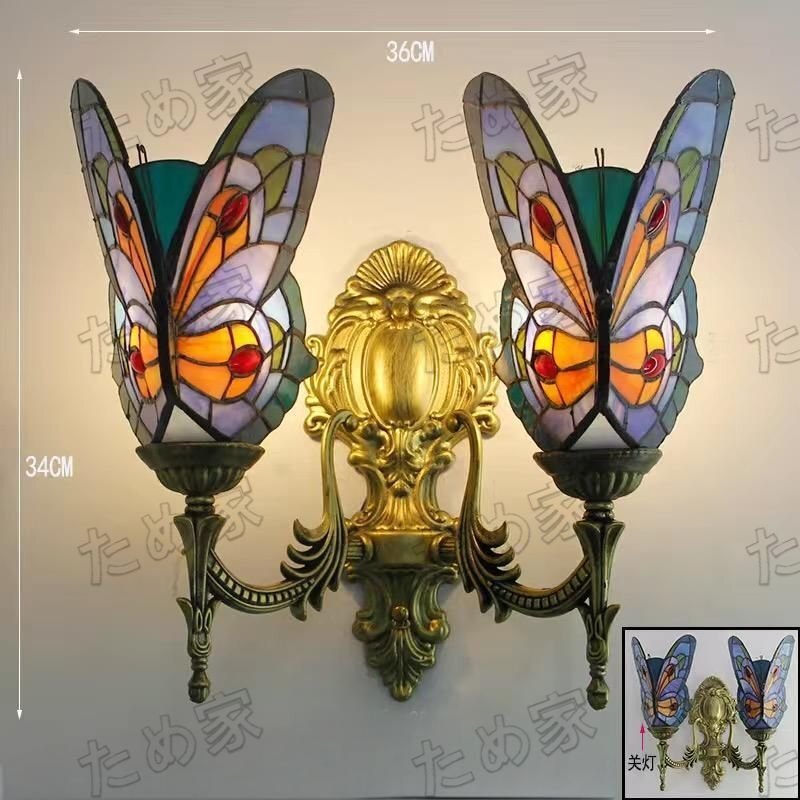 - 10 チョウチョウ ステンドグラスランプ ステンドグラス ペンダントライト壁掛け照明ガラス工芸品 豪華 ダブルライト 電球つき