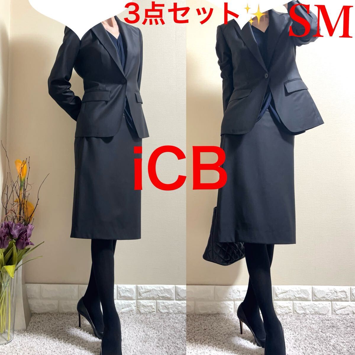 - 美品3点!Sスーツ!icb セットアップ ビジネススーツ 黒 通年スーツ プラステ PLST 濃紺カットソー付き!オフィス 式典 面接 通勤