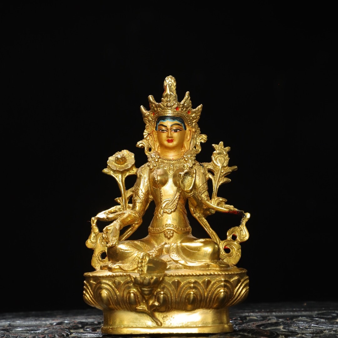 - 『清・銅製・塗金・綠度母像・密宗密教・蔵伝仏像・供養品』極細工 置物 古賞物 中国古玩 中国古美術