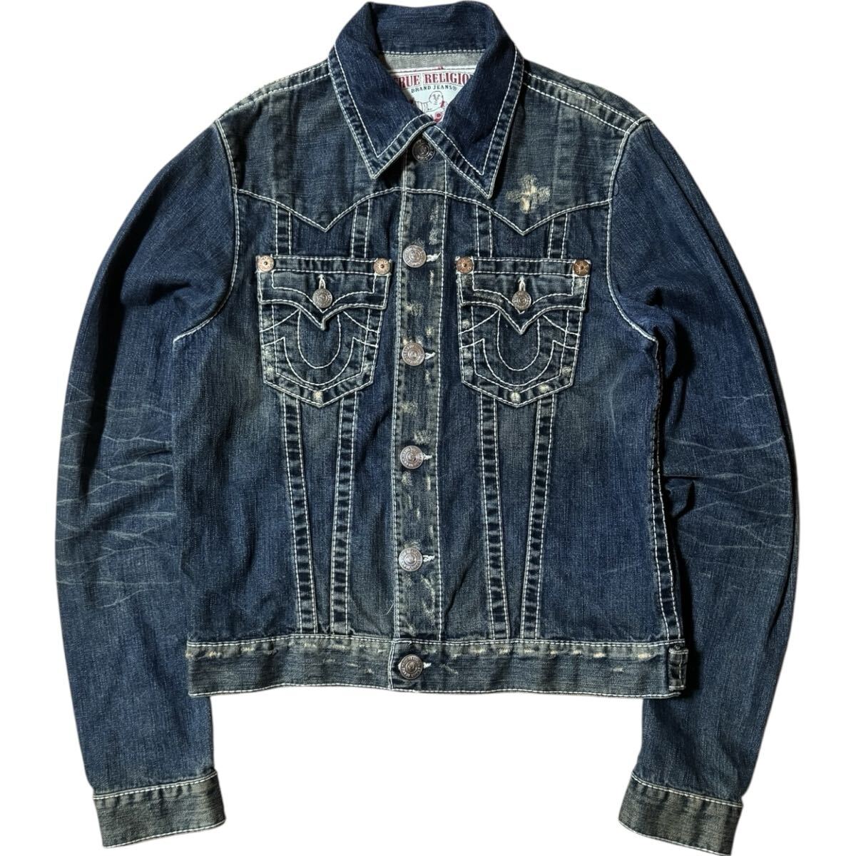 - TRUE RELIGION 米国製 JIMMY BIG T ダメージ加工 短丈 デニムジャケット Lサイズ