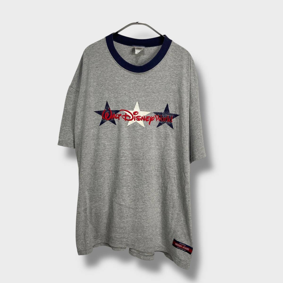 - ☆送料無料☆90s☆ウォルトディズニーワールドリンガーTシャツ☆グレー☆XXL☆USA製☆刺繍ロゴ☆スター☆H25M