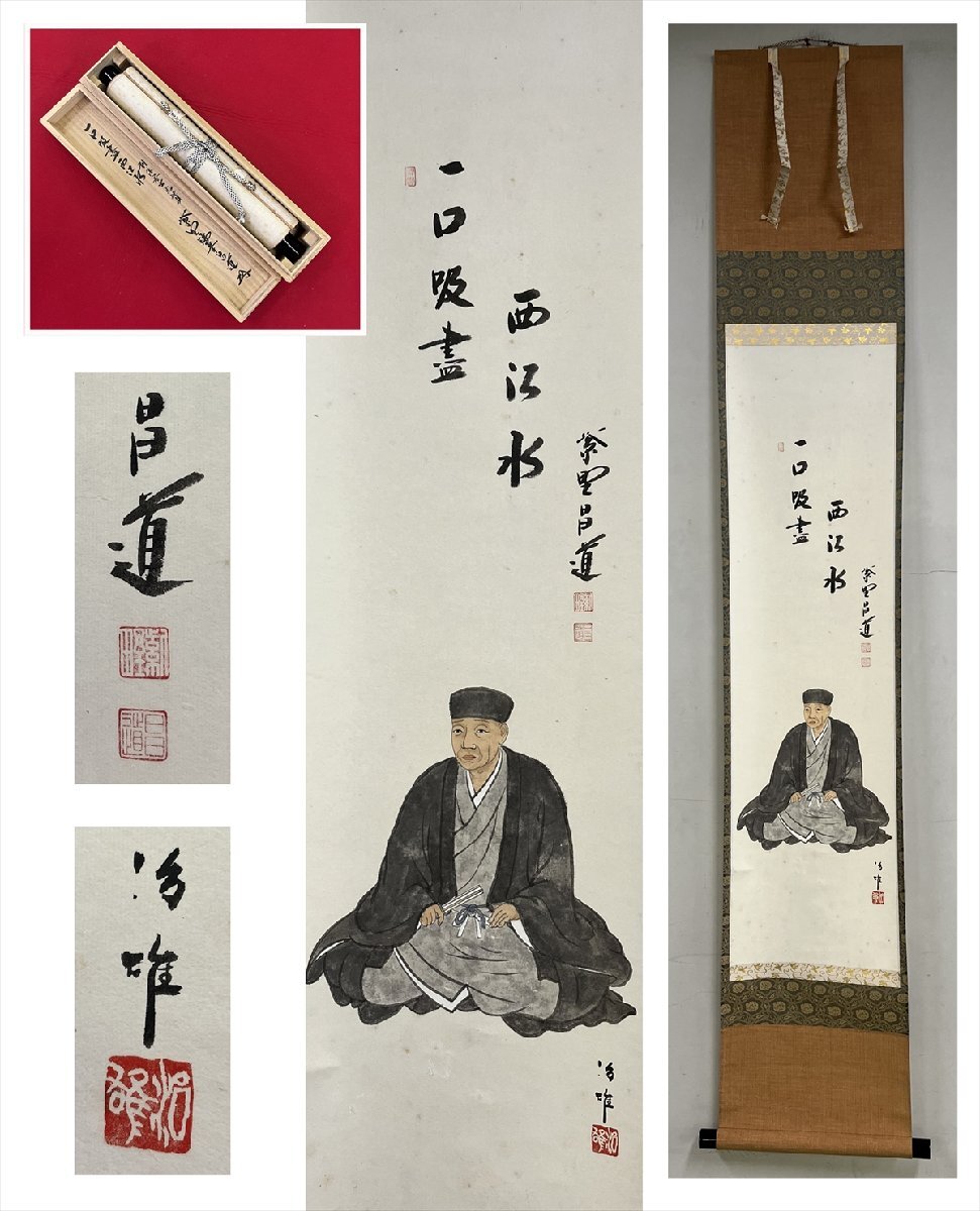 - 【千寿】大徳寺派 瑞峯院 前田昌道 一口吸尽西江水 利休坐像 画賛 紙本 a802◆箱/茶道具/古美術/時代品/掛軸/100027075
