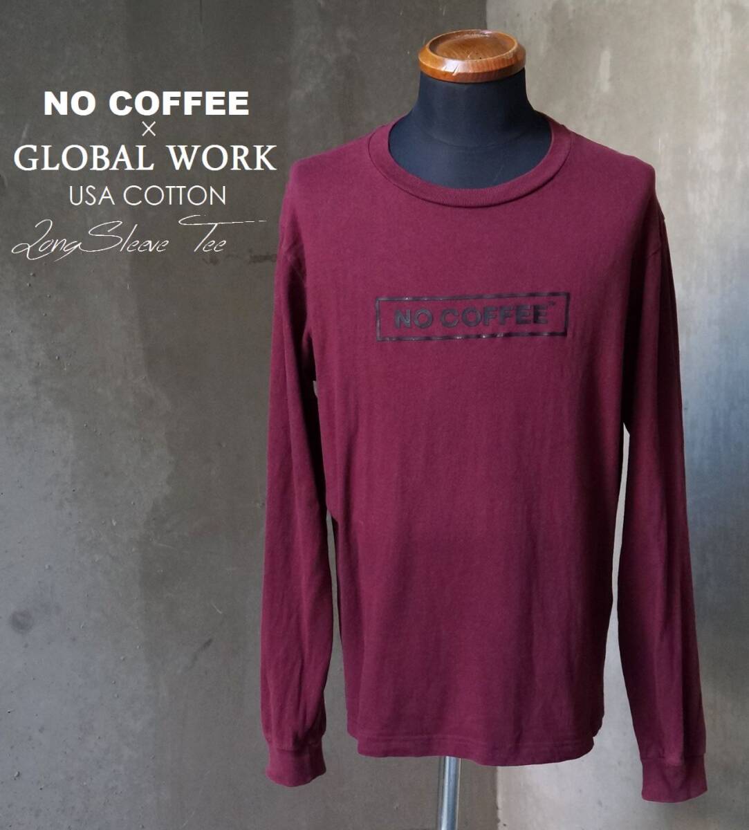- グローバルワーク GLOBAL WORK × NO COFFEE コラボ 臙脂 ボルドー 長袖 Tシャツ ロンT S M
