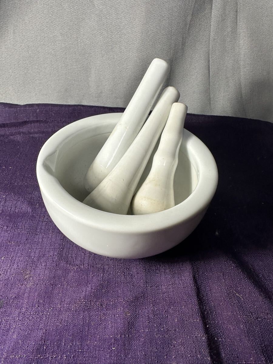 - 陶磁器製 鉢と乳棒 3本セット ごまや香辛料や薬などすり用 鉢です