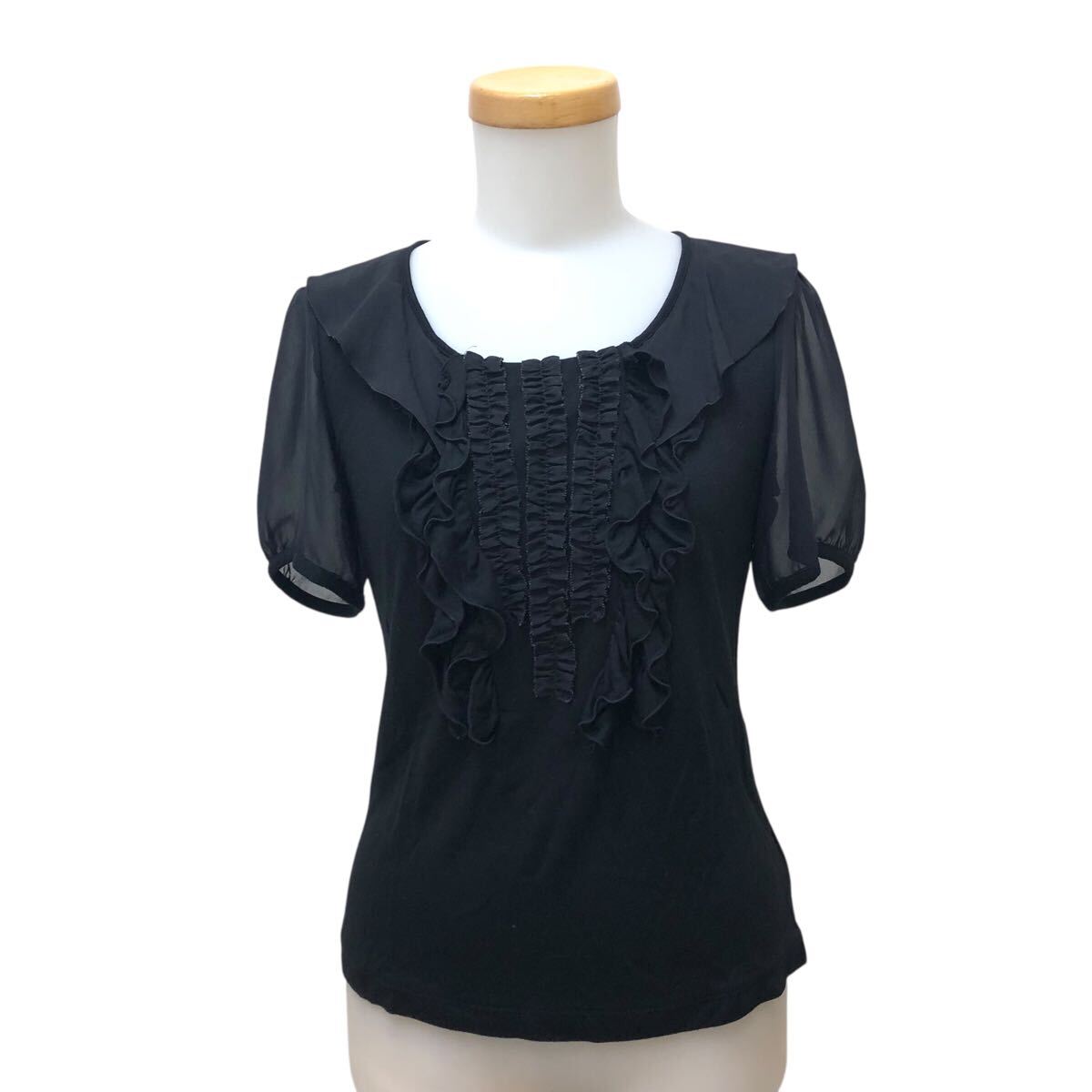 - Nm315-14 TO BE CHIC トゥービーシック シフォン 袖 半袖 フリル Tシャツ シャツ カットソー トップス ブラック 黒 レディース Ⅱ