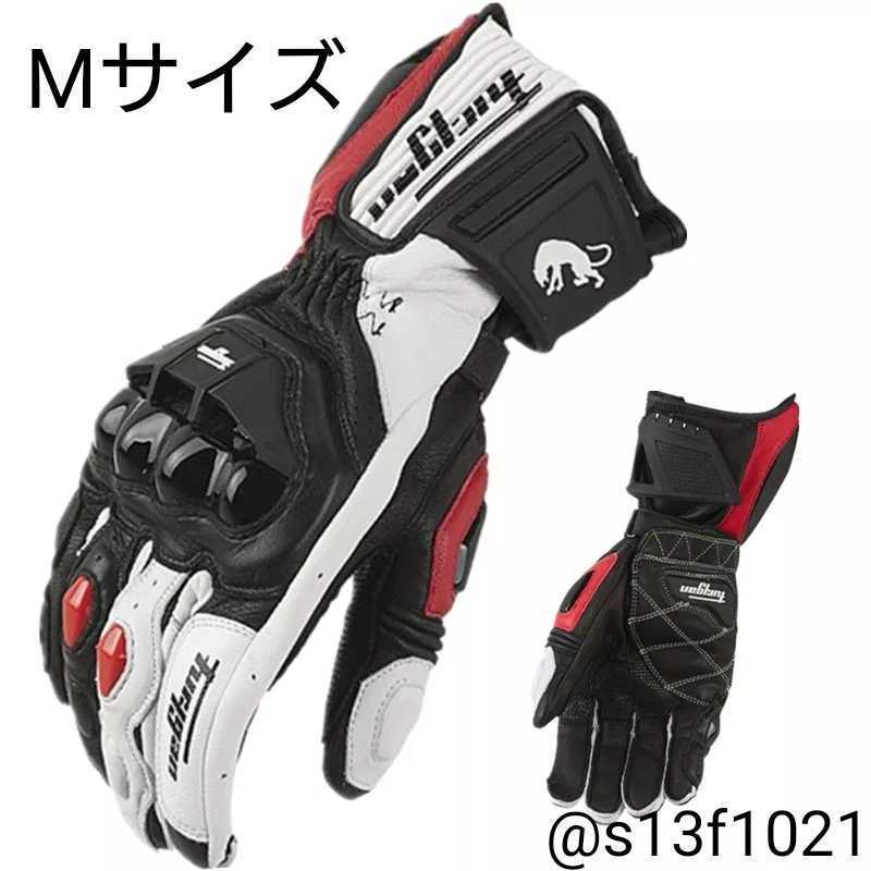 - 【送料無料】革製バイクグローブ ホワイト&ブラック&レッド Mサイズ レーシンググローブ