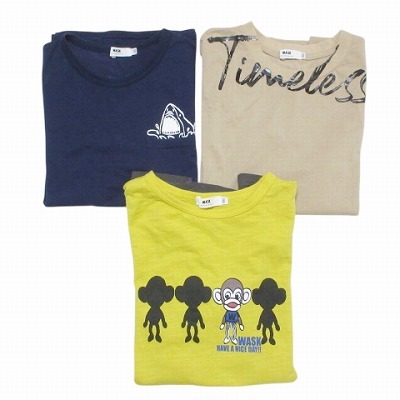 > ワスク WASK Tシャツ 3点セット キッズ 男の子 160cm 子供服 まとめ 半袖 プリント 紺 黄 ベージュ X キッズ