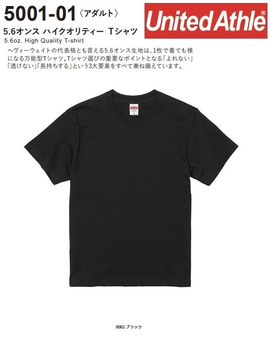 > [ネコポス/2枚まで]◆UnaitedAthle 5001-01【0002ブラック・Mサイズ】5.6オンスハイクオリティTシャツが、即決798円