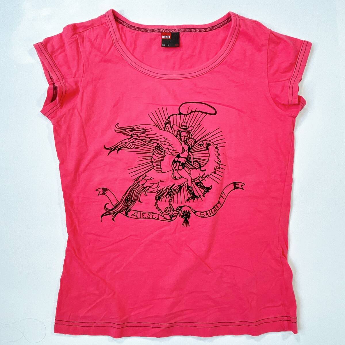 > DIESEL ディーゼル デザインTシャツ 半袖 トップス M コットン 可愛いピンク系 レディース ショートスリーブ カジュアル 夏物 ☆066y