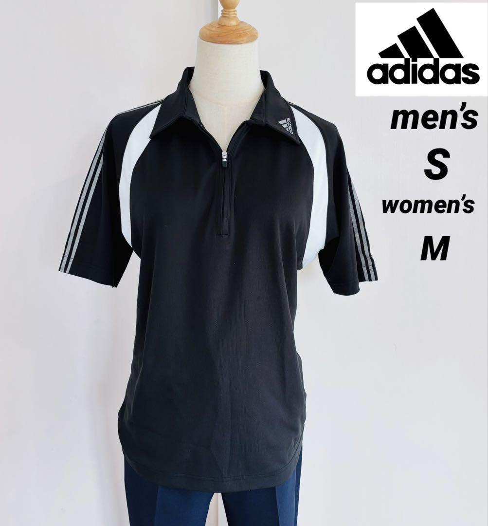 - adidas アディダス ロゴ入り 半袖ポロシャツ メンズ S レディース M ブラック