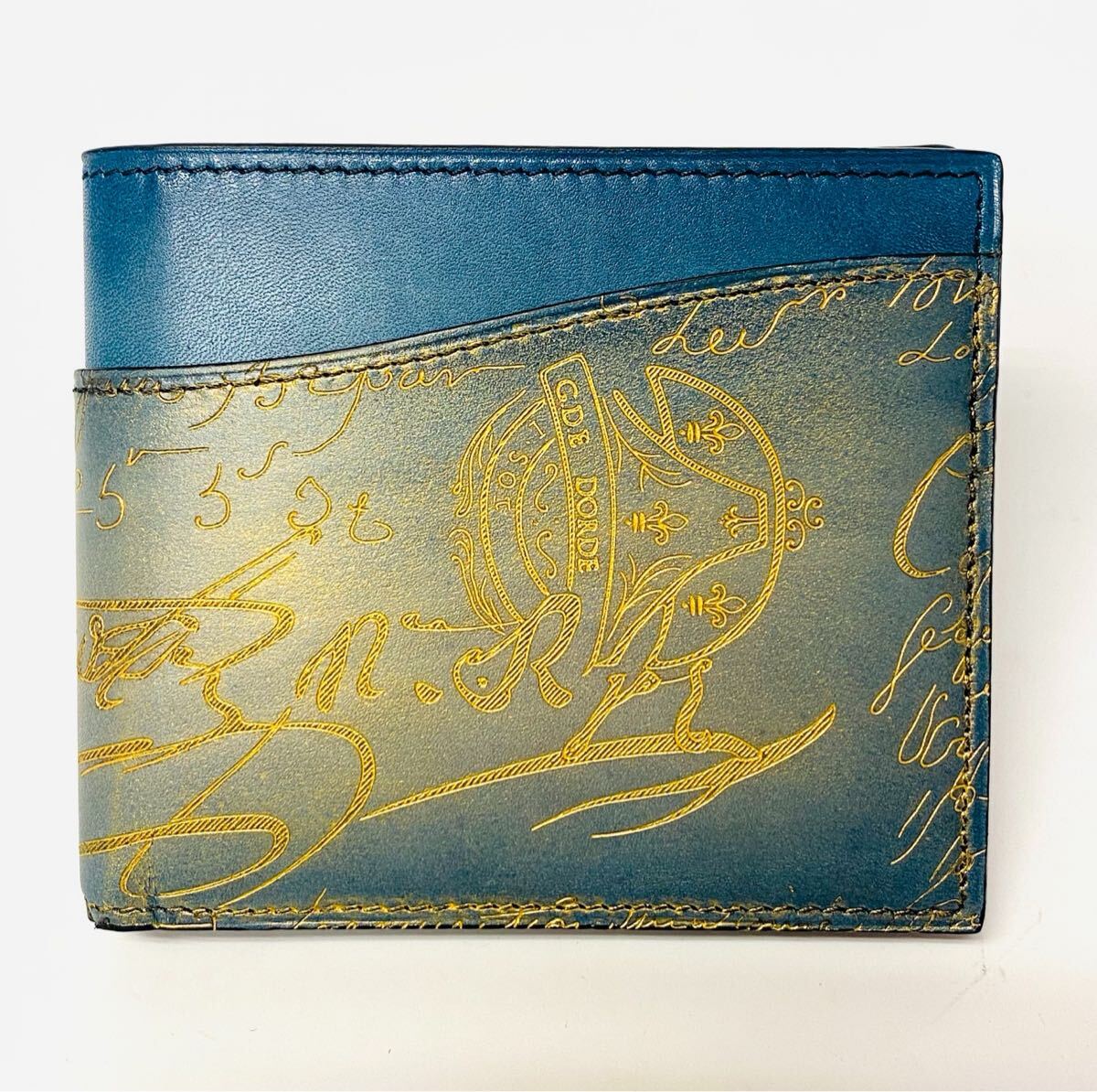 - 新品 特注オーダー 定価20万 Berluti ベルルッティ ゴールデンパティーヌ マコレ スクリットスワイプレザー ウォレット STONE DENIM