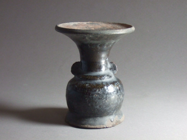 - 江戸初期迫力ある薩摩焼双耳仏花器薄端薩摩のくろもん苗代川焼き龍門寺焼見立ての花器古民藝