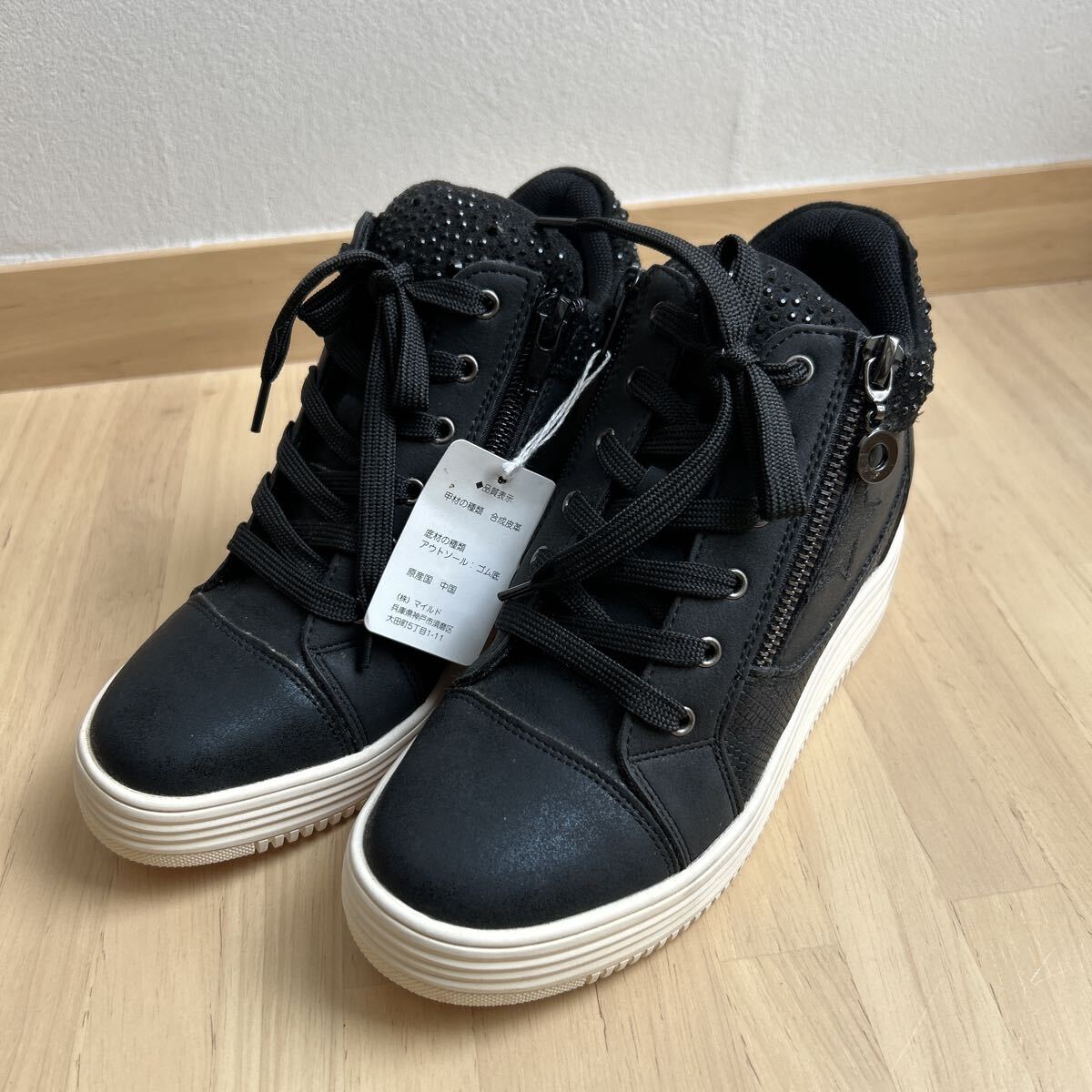 > 22.5-23センチ S ブラック黒 ハイカットスニーカー スニーカー ブラックMUUM(ムーム)
