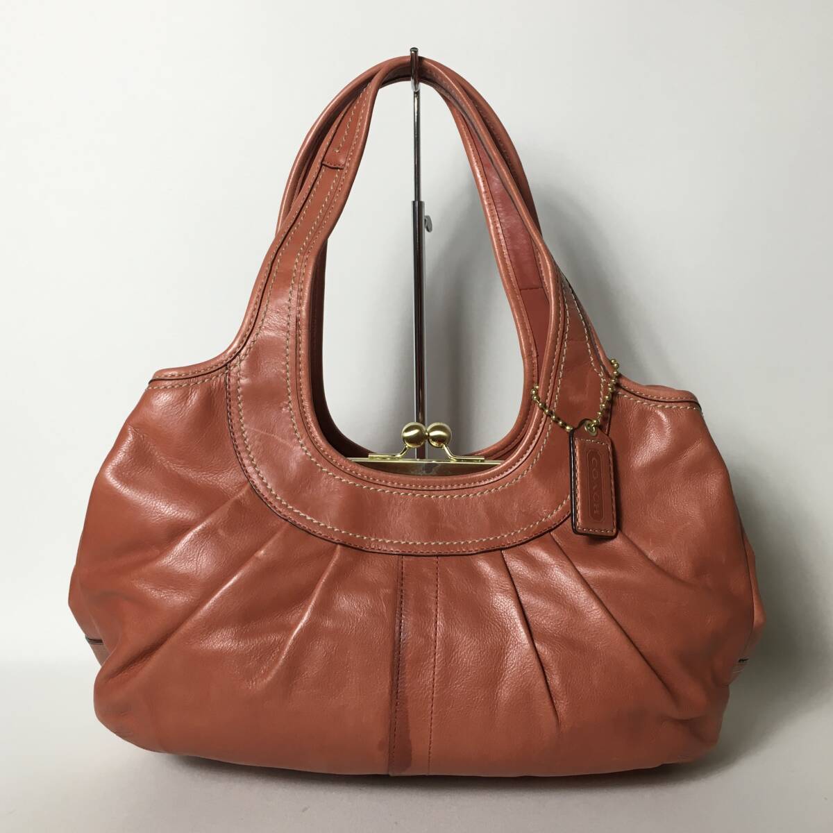 - 77B256|コーチ ショルダーバッグ レザー レッド がま口