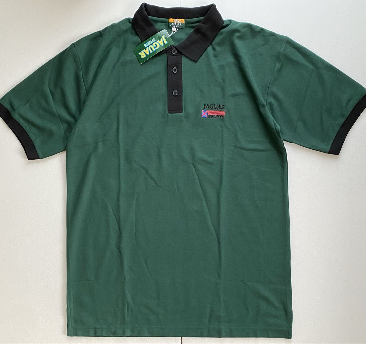 > 新品未着用◆JAGUAR SPORTS ジャガー スポーツ 半袖ポロシャツ ダークグリーン ロゴ刺繍 メンズ M 実寸L位