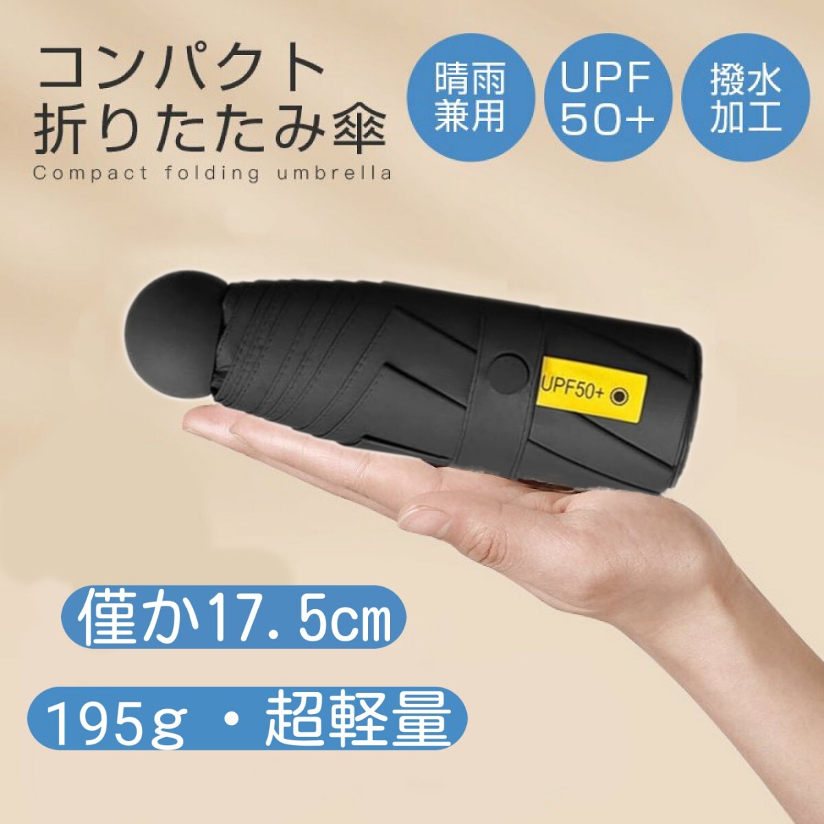 - 折りたたみ傘 晴雨兼用 UPF50+ 日傘 コンパクト 超軽量 小型 UVカット100% 紫外線対策 梅雨対策 遮光遮熱 ブラック