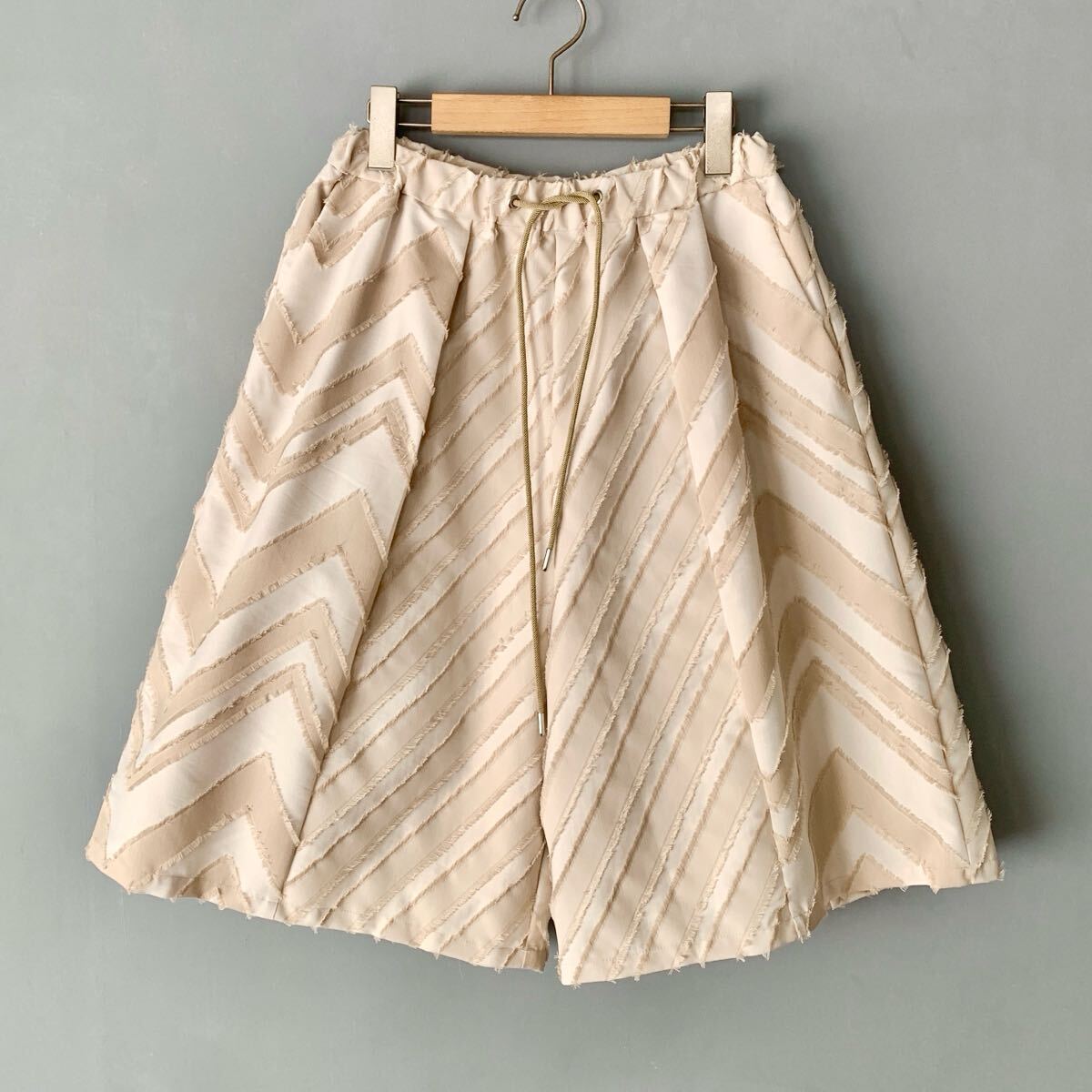 > MIDIUMISOLID スイッチドショートパンツ ミディウミソリッド メンズ ワイドシルエット ショーツ ベージュ ストライプ ユニセックス