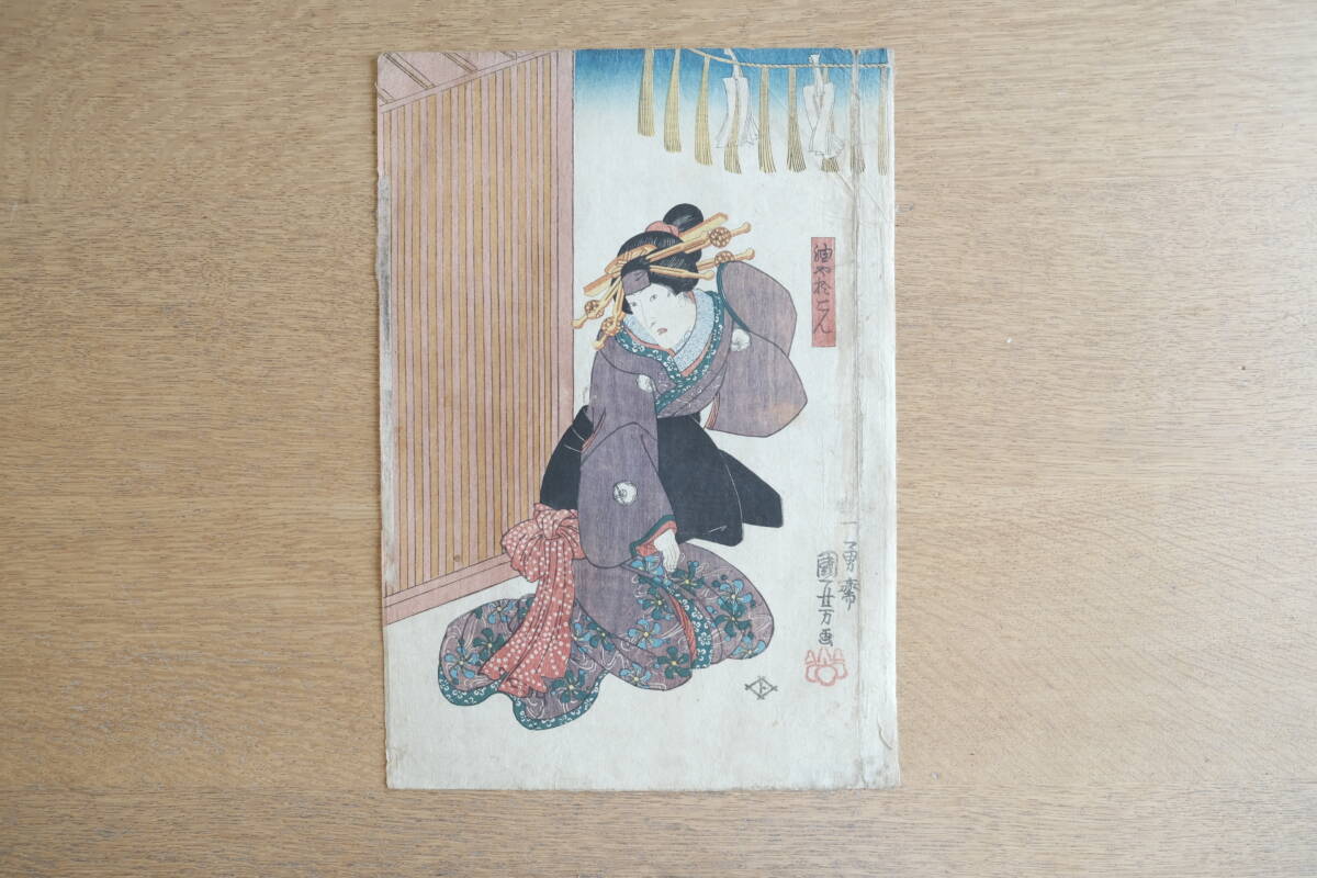 > 歌川国芳 《役者絵 女形図》 大判錦絵 / 一勇斎国芳画 / 浮世絵 木版画 oban tate-e (江戸末)