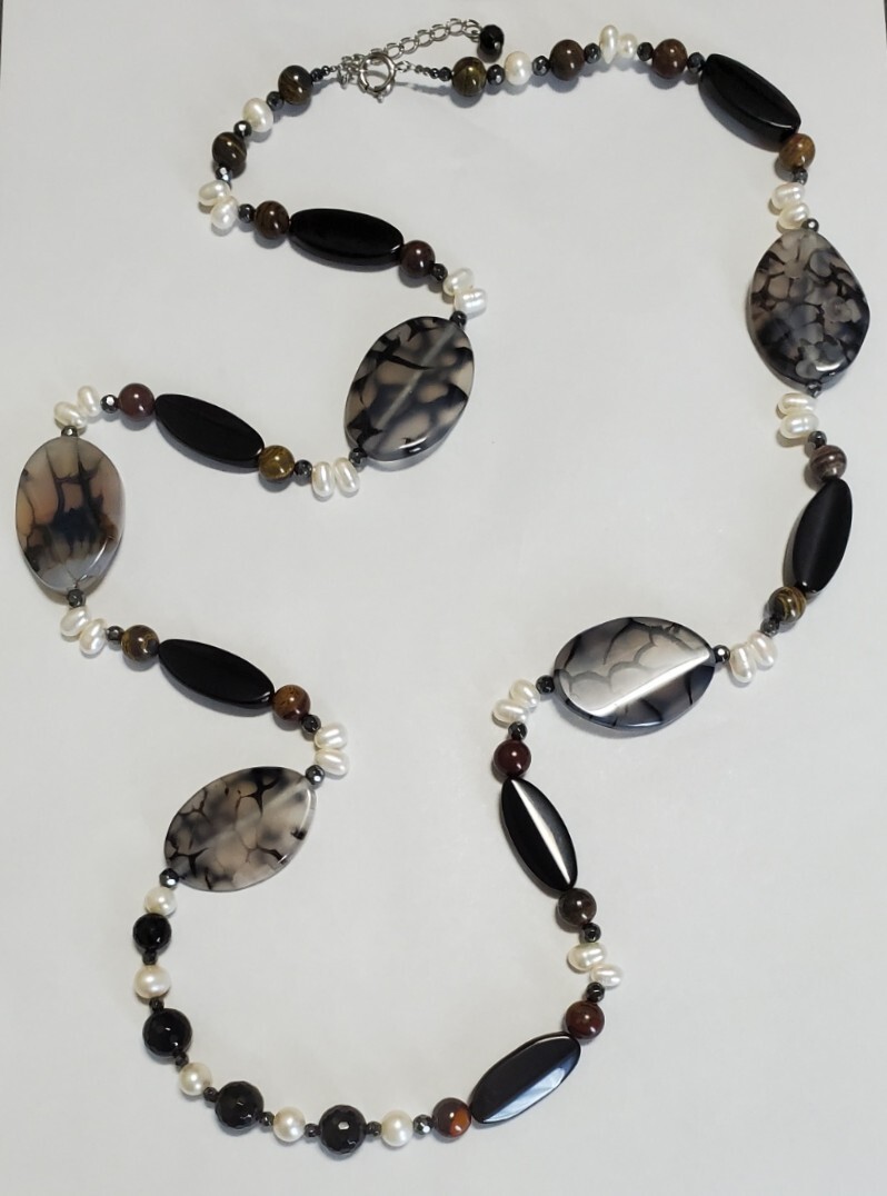 > ゴージャス 本真珠 天然石 カラーストーン ネックレス 存在感抜群 レディース アクセサリー 88㎝-92㎝ 109,1g 美品