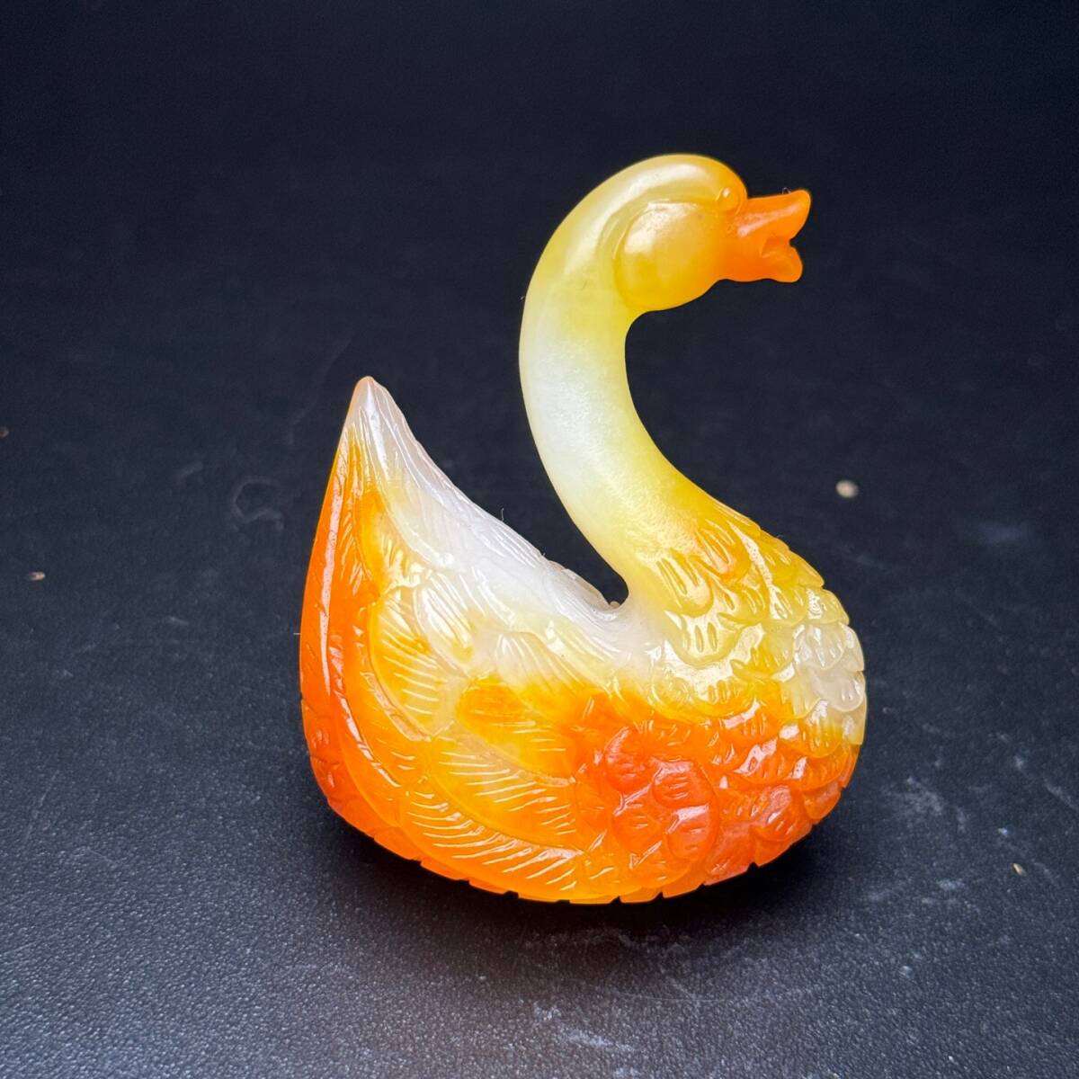 > 蔵友旧蔵出 和田玉製 細密彫 紅沁 吉祥如意 鵝如意 玉質細膩 希少珍品 貴重品 置物 古賞物 中国古玩 中国古美術品