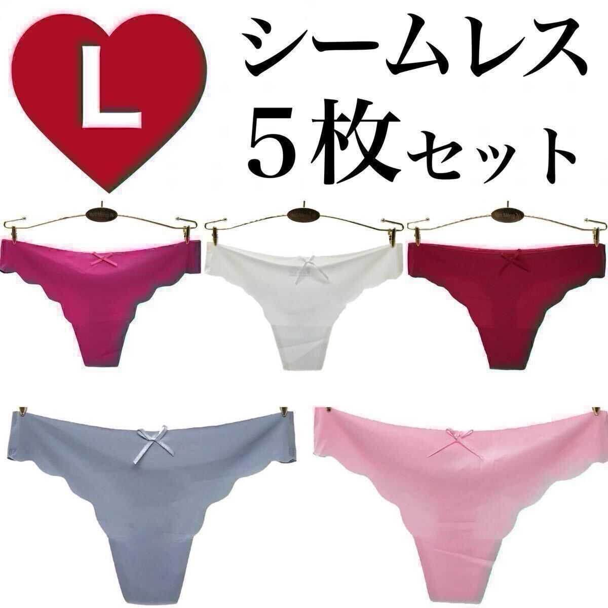 - Tバック シームレス ショーツ 5枚セット Lサイズ ホワイト グレー ピンク まとめ売り 下着 レディース 白 レッド レディース 赤