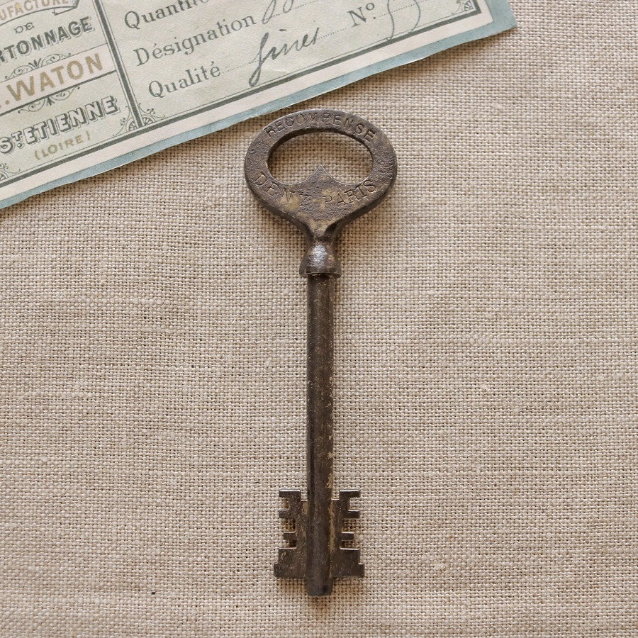 - 【刻印 DENY PARIS】1930年代 フランス アンティーク 鍵 鉄製 19-B/アンティークキー カギ key 雑貨 かぎ