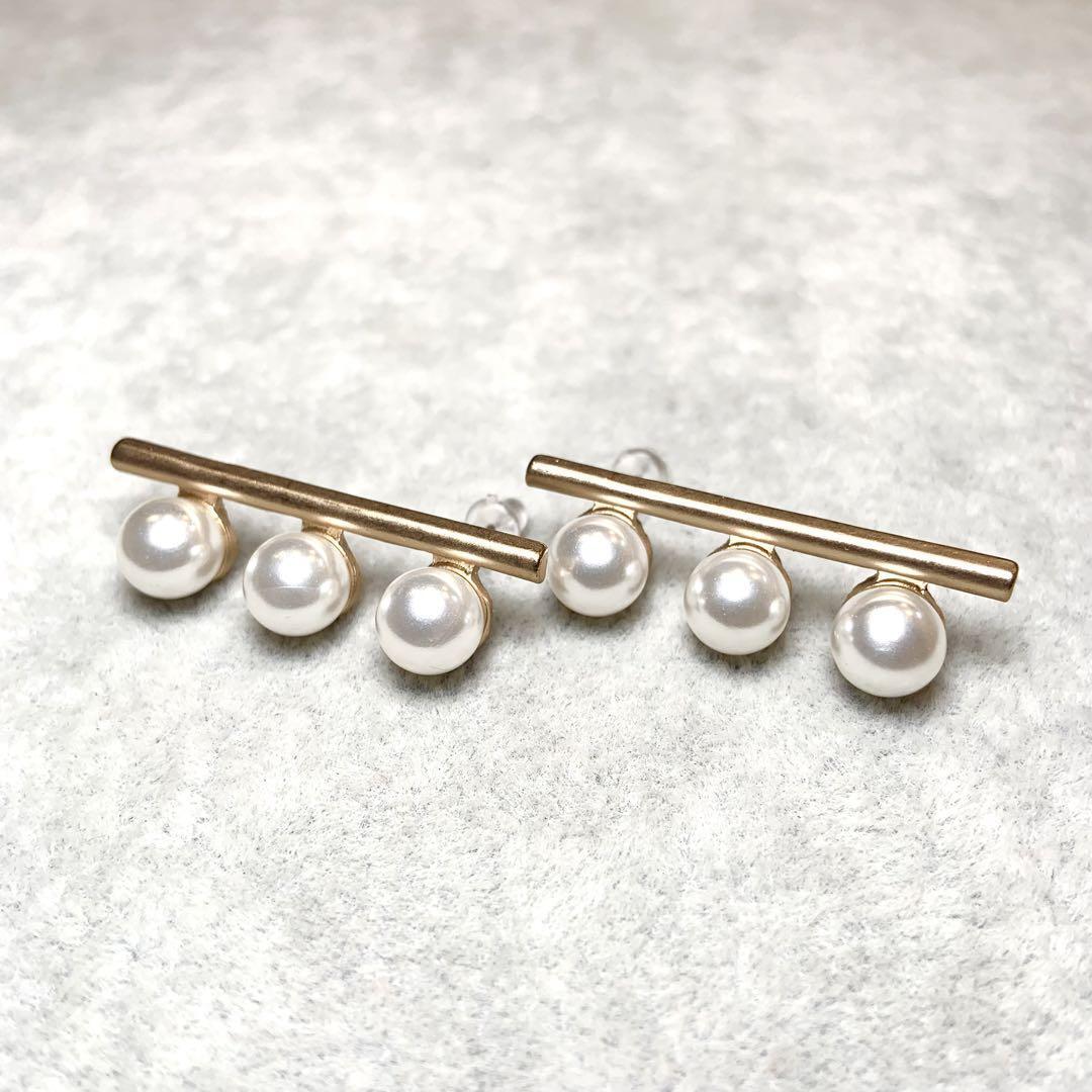 - 1071【再入荷無】3連パール ピアス ゴールド ハイクラス ジュエリー 小顔 アクセサリー ジュエリー シンプル レディース かわいい 真珠