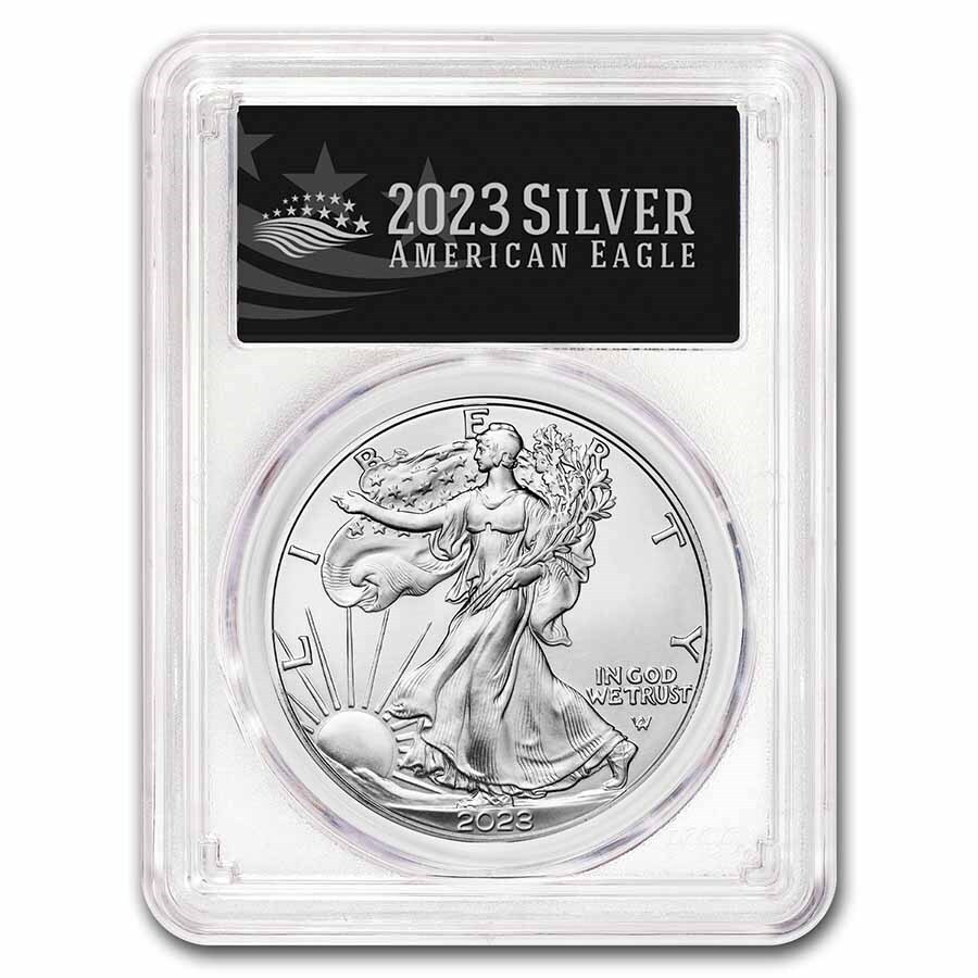 > [保証書・スラブ付き] 2023年 (新品) アメリカ「イーグル・ウオーキング リバティ」純銀 1オンス 銀貨 PCGS MS70 (発行初日、黒ラベル)